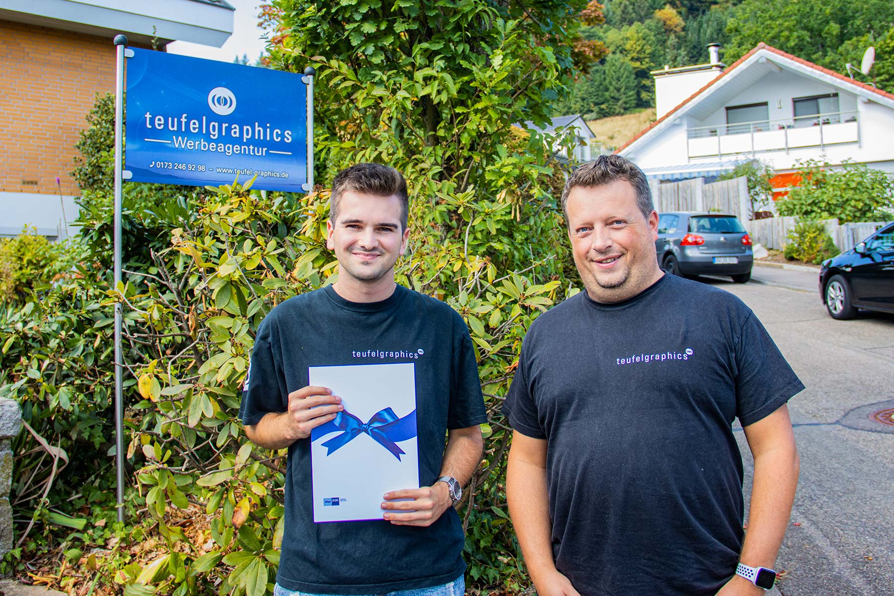 Aufgrund seiner hervorragenden Mitarbeit wurde er nach seiner Lehre als Mediengestalter für Digital und Print von Simon Teufel als Angestellter übernommen und ist damit der erste Vollzeit Mitarbeiter von Teufelgraphics. Damit steht nun eine weitere qualifizierte Kraft für zukünftige Kundenaufträge bereit.