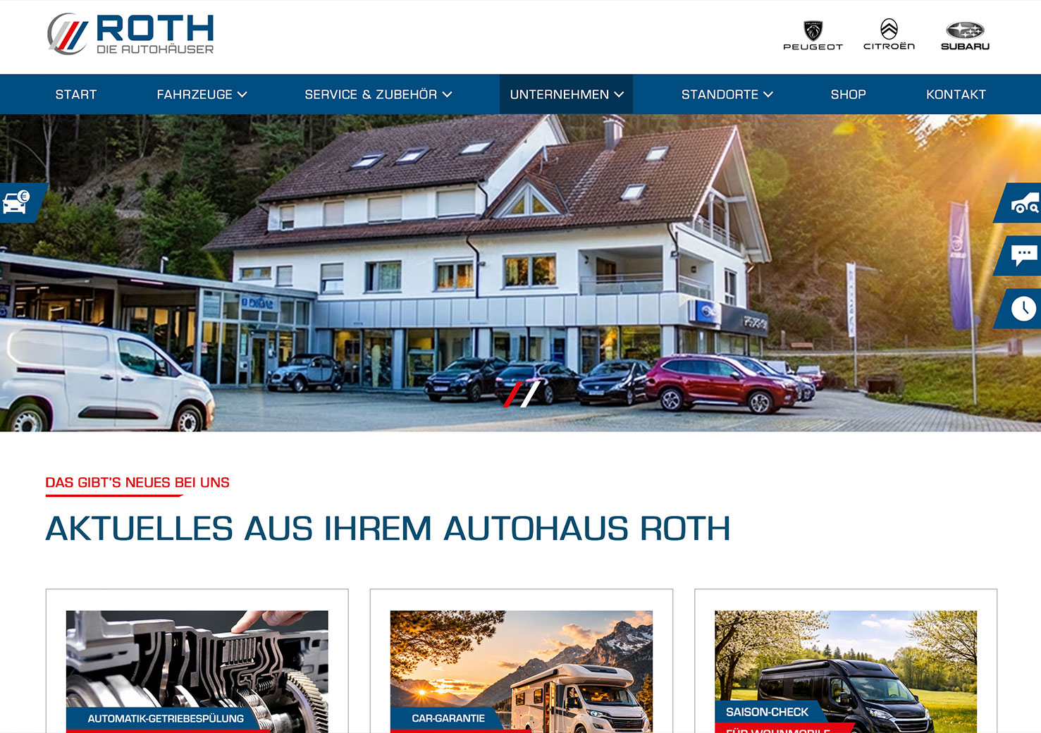 Auch technisch wurde die Website weiterentwickelt, um eine bessere Performance und eine reibungslose Darstellung auf allen Endgeräten zu gewährleisten. Die Kombination aus klarer Struktur, moderner Gestaltung und optimierter Funktionalität sorgt dafür, dass das Autohaus Roth online zeitgemäß und professionell präsentiert wird – ohne den bestehenden Charakter der Marke zu verlieren.