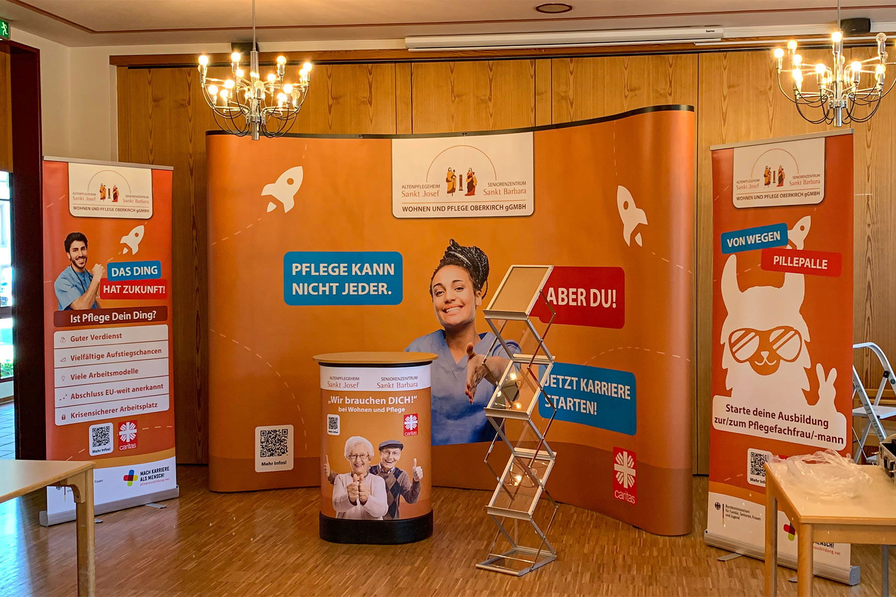 Für unseren Kunden Wohnen und Pflege von dem Altenpflegeheim Sankt Josef und dem Seniorenzentrum Sankt Barbara haben wir einen Messestand für die Berufsinfo Messe in Oberkirch gestaltet.